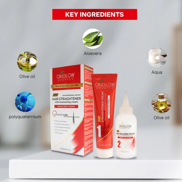 Oxyglow Professional Salon Hair Straightener with Neutralising Cream 200ml | Permanently Straightens Curly & Resistant Hair, Smooth, Shiny & Manageable Results