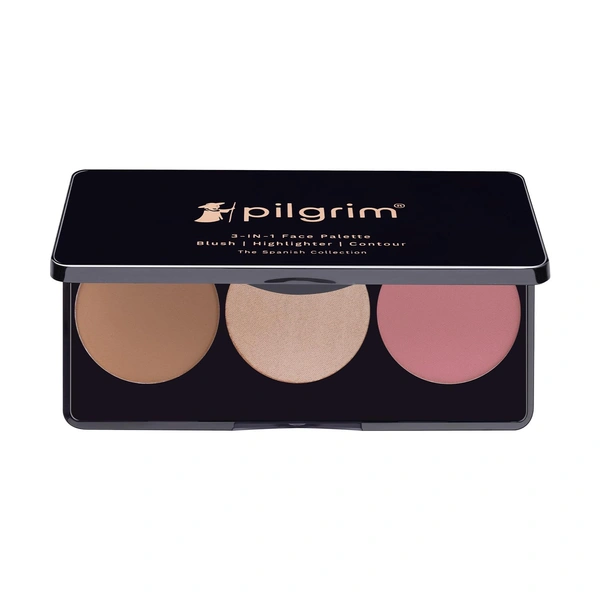 Enhance your natural beauty with the Pilgrim 3-in-1 Face Palette in Soft Elegance - 01. This 12g compact features blush, highlighter, and contour shades for a sculpted, radiant look. Highly pigmented and long-lasting, it effortlessly defines cheekbones, adds a luminous glow, and contours your face. Suitable for all skin tones, it delivers professional makeup results at home, perfect for daily wear or special occasions.