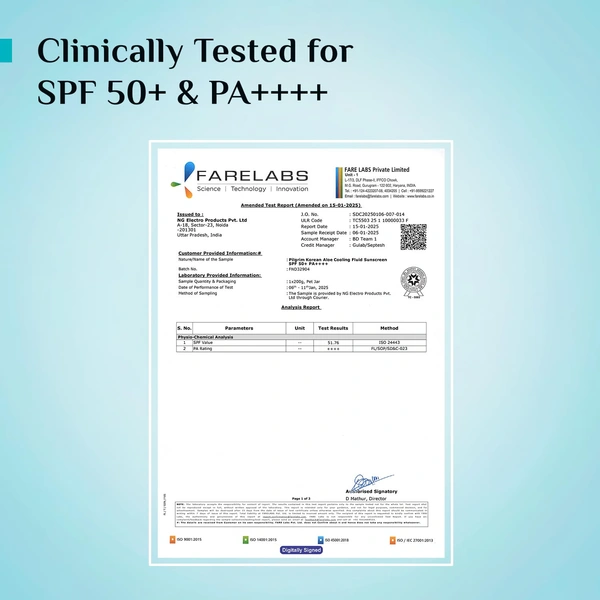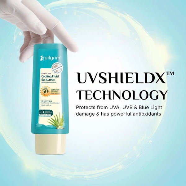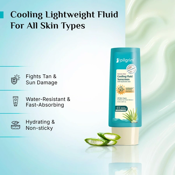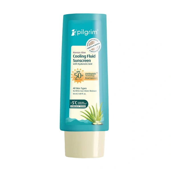 Pilgrim Korean Aloe Cooling Fluid Sunscreen with Hyaluronic Acid 50ml | SPF 50+ PA++++ | Instant Cooling Effect | Broad Spectrum Protection | Lightweight & Water-Resistant