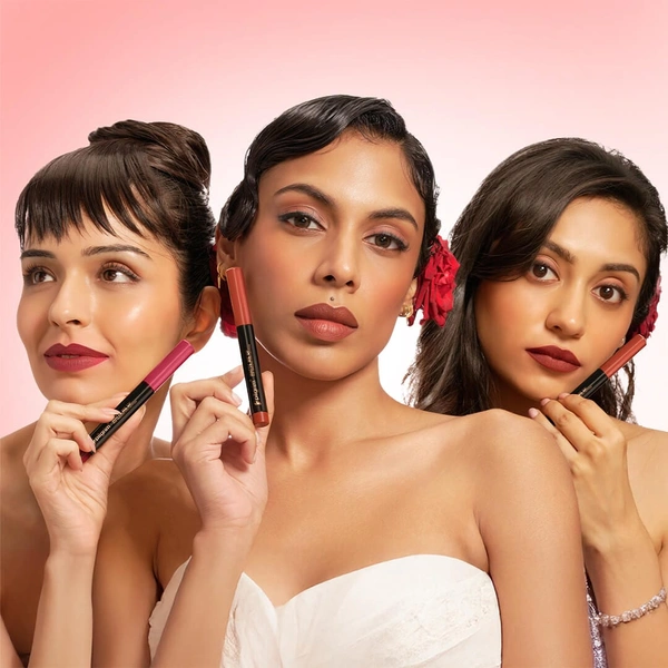 EmbraceFlattering rosy nude matte with Pilgrim Lip Crayon Matt Me Up in Rose Play 12. This Spanish inspired velvet matte formula delivers rich pigment in a smooth effortless single swipe. Lightweight, comfortable and transfer resistant for all day long wear without drying. The rosy nude tone adds natural freshness and soft feminine elegance. Perfect for daily wear beauty, office looks, date mood, glam outings and Indian skin tones.