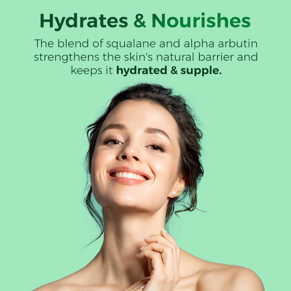 Squalane Glow Cr'me Serum is a lightweight blend perfectly designed to deliver a luminous healthy glow. Crafted for all skin types, the serum is a one-step sure shot way to brighten and hydrate. Squalane is a plant-derived natural hydrator that replenishes and rejuvenates by locking the moisture in. Tranexamic acid and alpha arbutin even the skin tone and add radiance by reducing acne scars, dark spots, and pigmentation. This antioxidant-rich elixir, with mulberry, blueberry, and olive leaf extracts, can be applied onto clean skin to instantly firm and smooth, without any sensitizing or irritating effects. Discover a brighter complexion!