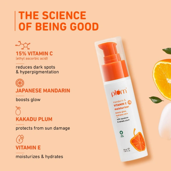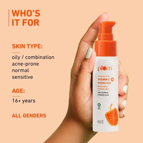Plum 3% Vitamin C Moisturizer 50ml with Mandarin | Brightening Face Cream for Glowing Skin | Reduces Hyperpigmentation, Dullness & Uneven Skin Tone | Vegan & Fragrance-Free