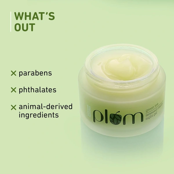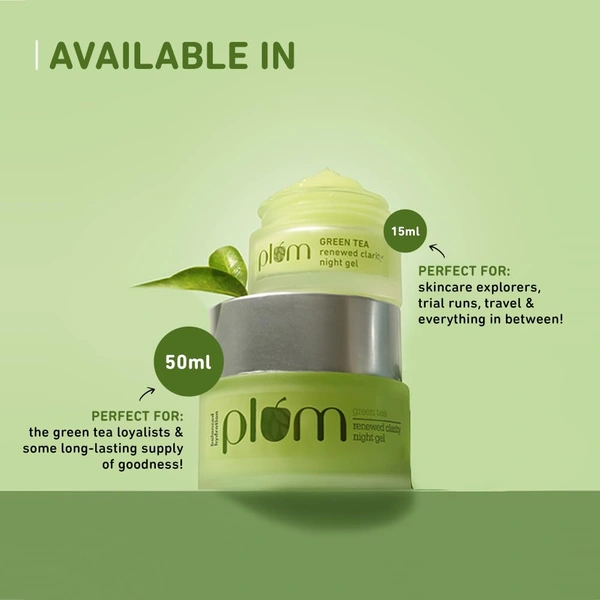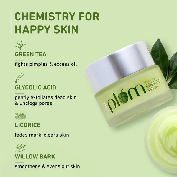 Plum Green Tea Renewed Clarity Night Gel 50ml with Glycolic Acid | Hydrating Night Cream for Women | Fights Acne, Repairs Overnight | Lightweight, Vegan & Paraben-Free