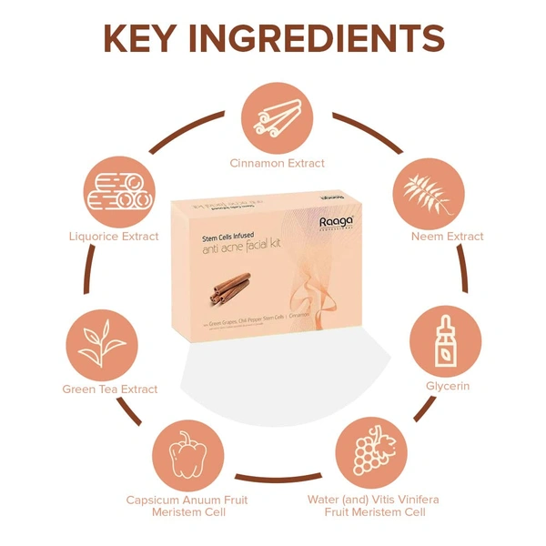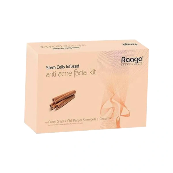 Raaga Professional Stem Cells Infused Anti Acne 6 Step Facial Kit 61g | with Green Grapes, Chilli Pepper Stem Cells & Cinnamon | Boos Skin Metabolism | Gives Long-Lasting Skin Protection | for All Skin Types