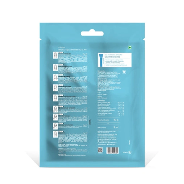 SARA Hydra Aqua Bomb Facial Kit is designed to deeply hydrate, refresh, and brighten skin with the power of Hyaluronic Acid and Tea Tree extracts. The multi-step salon-style facial helps cleanse, exfoliate, nourish, and rejuvenate skin while improving texture and glow. Its lightweight, soothing formula helps restore moisture balance, leaving skin soft, smooth, radiant, and refreshed. Suitable for all skin types and ideal for dull, dehydrated, and tired skin.