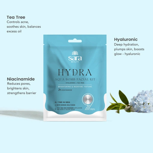 Sara Beuty Hydra Aqua Bomb Facial Kit for Skin Brightening with Hyaluronic Acid & Tea Tree | Deep Hydration, Glow Boost, Salon Style Facial Care Kit