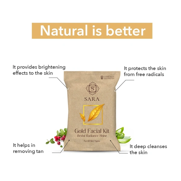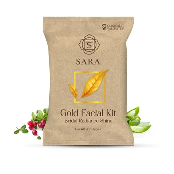 Sara Gold Facial Kit (6 Step) | Luxurious Radiance | Anti-Aging Treatment | Gold Infused Skincare for Glowing Skin | Bridal Radiance Shine | Suitable for All Skin Types | 43g