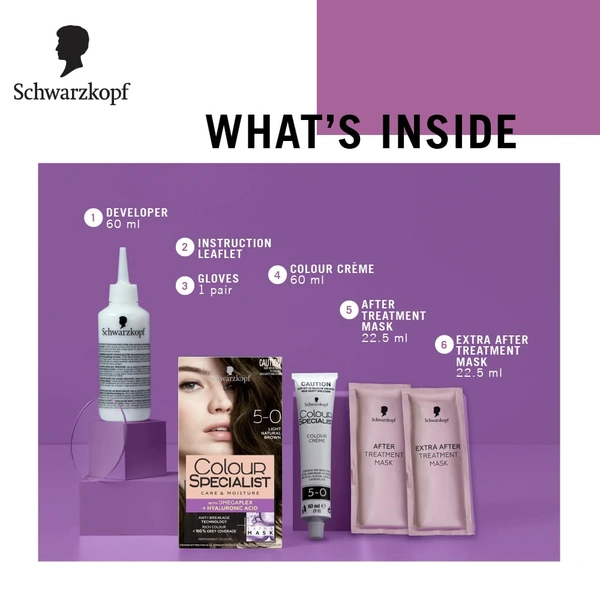 Schwarzkopf Colour Specialist 5.0 Light Natural Brown Permanent Hair Colour 100ml With Omegaplex + Hyaluronic Acid | Anti-Breakage | 100% Grey Coverage | Nourished Shine