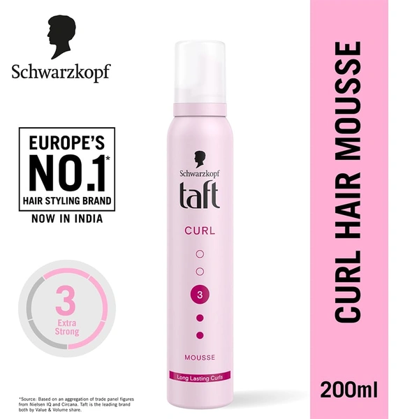 Schwarzkopf Taft Curl Hold 3 Hair Mousse | Medium Hold & Bounce | Frizz Control & Curl Definition | Lightweight & Non-Sticky | Silicone-Free | For Curly & Wavy Hair