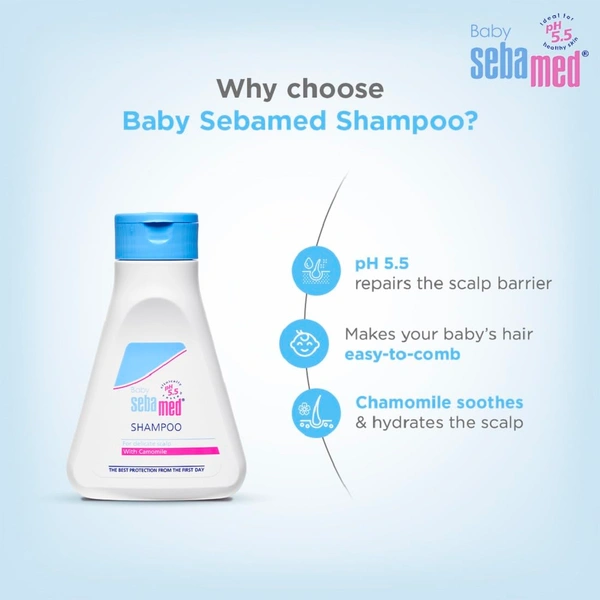 Sebamed Baby Shampoo is specially formulated to be gentle and mild, making it the perfect choice for your baby's sensitive skin and hair. This pH 5.5 balanced shampoo helps protect the natural acid mantle of your baby�s scalp, ensuring it stays soft, smooth, and hydrated. The formula is enriched with camomile extract, which soothes the scalp and prevents irritation while cleansing, leaving your baby's hair soft, silky, and tangle-free. Designed for daily use, this dermatologically tested shampoo is free from parabens, sulfates, and artificial fragrances, making it safe and gentle for your little one's delicate skin. It also helps prevent dryness, itching, and irritation, providing gentle care for your baby's hair and scalp.