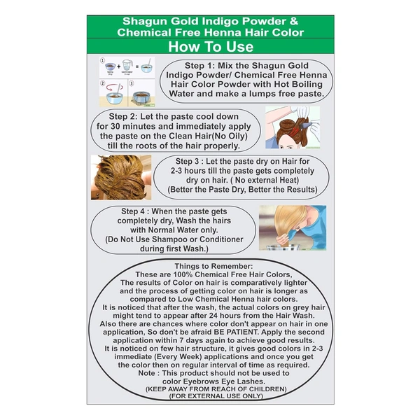 Mix powder with warm water to make paste Apply evenly on clean hair Leave for 1-2 hours Rinse thoroughly with waterReviews and Ratings
