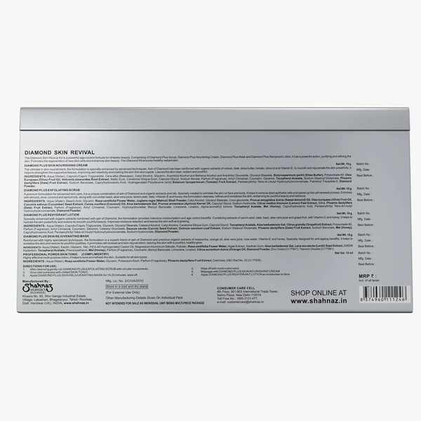 Shahnaz Husain Diamond Skin Revival Facial Kit | Diamond-Infused Skincare | Exfoliating, Nourishing & Rejuvenating | Anti-Aging, Hydrating & Glow-Boosting Facial Care