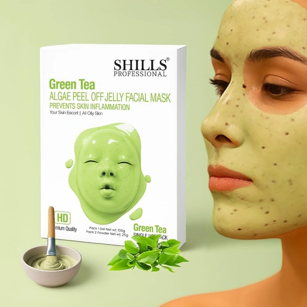 SHILLS Professional Algae Peel Off Jelly Facial Mask in Green Tea variant deeply cleanses pores while hydrating and brightening the skin. Enriched with algae extracts, it helps remove impurities, excess oil, and dullness. This professional spa-quality mask improves skin texture, leaving it soft, refreshed, and glowing. Suitable for all skin types, it provides a relaxing facial treatment experience at home with visible results.