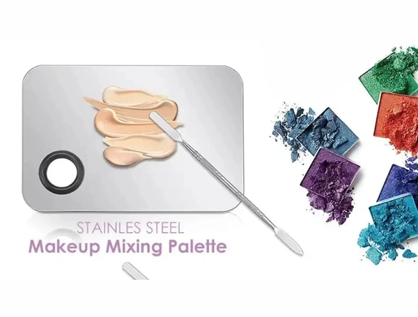 Shills Professional Stainless Steel Makeup Mixing & Blending Palette with Spatula | For Foundation, Lipstick, Concealer & Nail Art | Reusable, Easy to Clean
