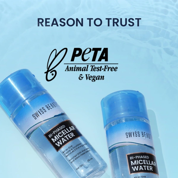 Swiss Beauty Bi-Phased Micellar Face Cleansing Water 100 ml | Refreshing & Nourishing Makeup Remover | Removes dirt, impurities | Gentle & Effective Cleansing | With Aloe vera and Witch Hazel Extract |
