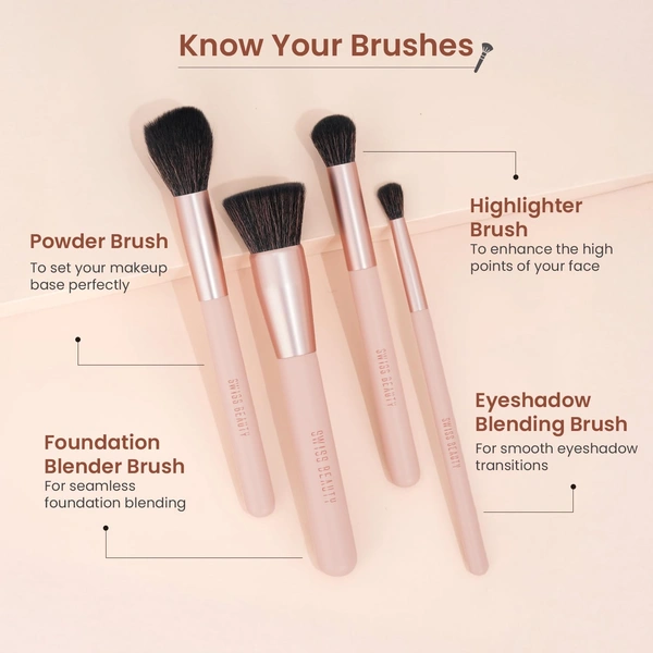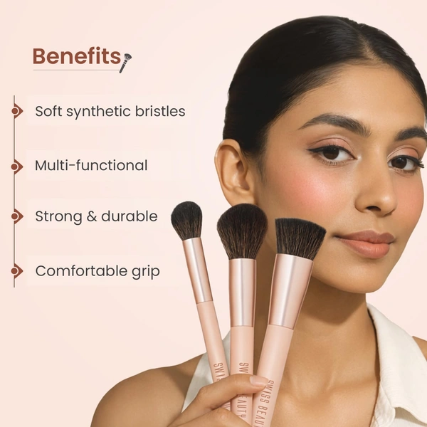 Create flawless makeup looks anywhere with the versatile 8-in-1 brush kit from Swiss Beauty. Designed with ultra-soft synthetic bristles, this compact and travel-friendly brush set helps achieve smooth and precise application. The lightweight, durable brushes are suitable for face and eye makeup, ensuring professional finishing. PETA-certified cruelty-free bristles make this set perfect for everyday use and on-the-go makeup routines.