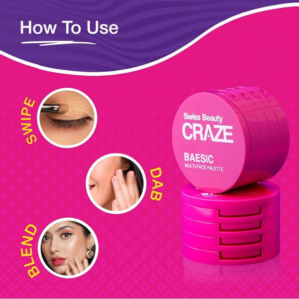 Swiss Beauty Craze Baesic Palette � 6g | 4-in-1 Multi-Face Palette | Versatile Matte & Shimmer Shades | Portable Eyeshadow for On-the-Go Looks | Perfect Matte & Shimmer Combo | Long-Lasting, Rich Pigmented Shades | Shade- Delulu