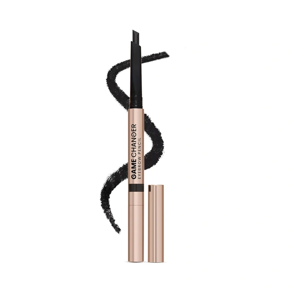 Define and shape brows effortlessly with the Game Changer Eyebrow Pencil from Swiss Beauty. Featuring a unique sword-tip applicator, it allows precise hair-like strokes for natural definition. The richly pigmented Charcoal Black shade delivers long-lasting colour while the sturdy spoolie blends and shapes brows perfectly. Its smooth, easy-to-use formula ensures fuller, well-groomed and beautifully defined eyebrows for everyday and professional makeup looks.