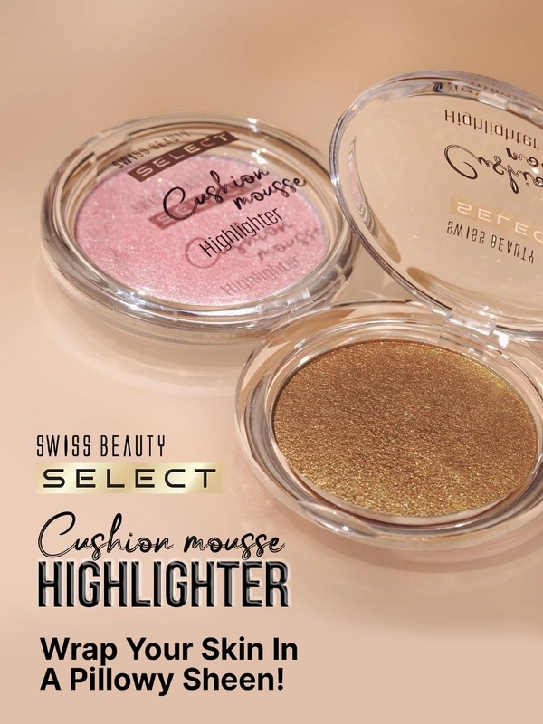 Swiss Beauty Select Cushion Mousse Highlighter 10g Shade 3 Champagne Gleam | Lit-From-Within Radiance | Glowy Dewy Finish | Lightweight Mousse Formula with Macadamia Oil