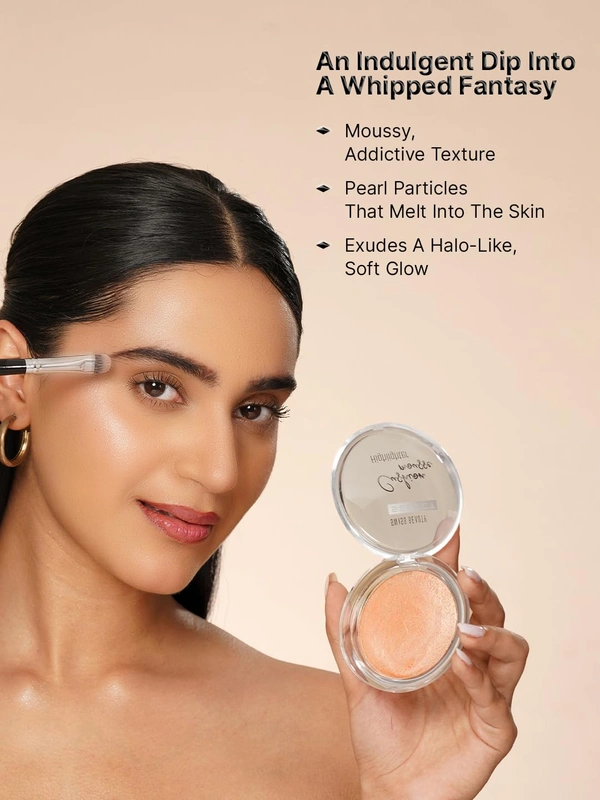 Illuminate your features with the Cushion Mousse Highlighter from Swiss Beauty. The airy mousse formula blends effortlessly to deliver a radiant lit-from-within glow. Infused with nourishing Macadamia Oil, it keeps skin soft, smooth and hydrated. The Champagne Gleam shade adds a warm luminous highlight that enhances facial contours, making it perfect for everyday makeup as well as glamorous party looks.