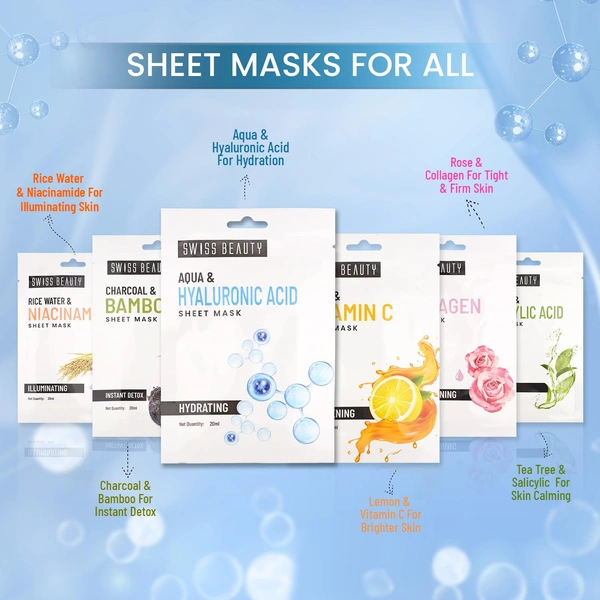 Swiss Beauty Hydrating Sheet Mask 20ml | With Aqua & Hyaluronic Acid | For Long lasting Hydration and Nourishment | Refreshing facial mask | Lightweight Fabric | Radiant Glow | 20ml