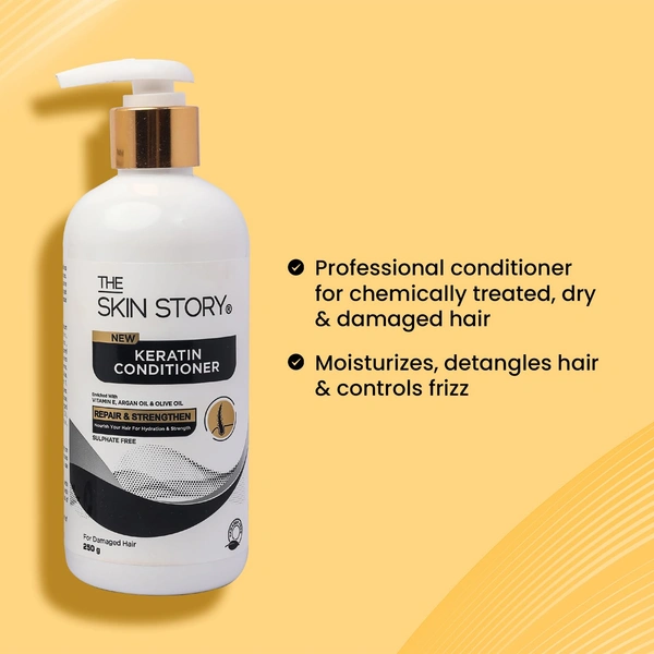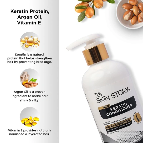 The Skin Story Sulfate-Free Keratin Conditioner 250g for Colored & Treated Hair | Repairs Split Ends & Damaged Hair | Enriched with Argan Oil & Vitamin E | For Frizzy, Dry, Shiny Hair |