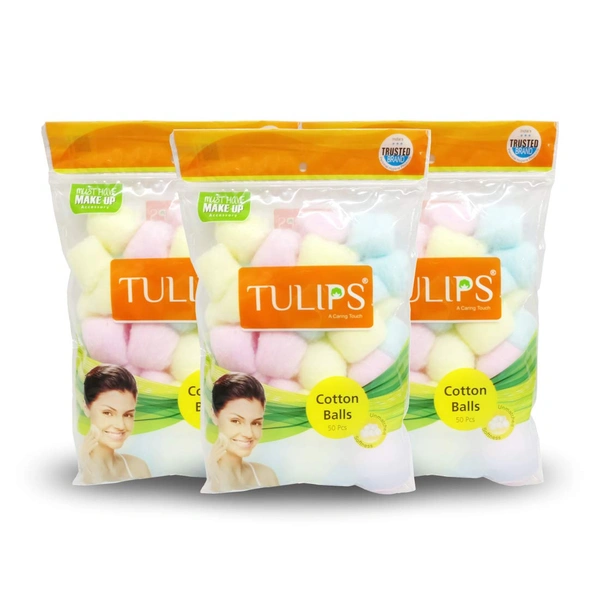 Tulips Cotton Balls Multi Color 50 Balls Pack of 3 | Soft, Pure & Gentle | Ideal for Makeup Removal & Skincare | 100% Natural Cotton | Safe for All Skin Types |for Everyday Use