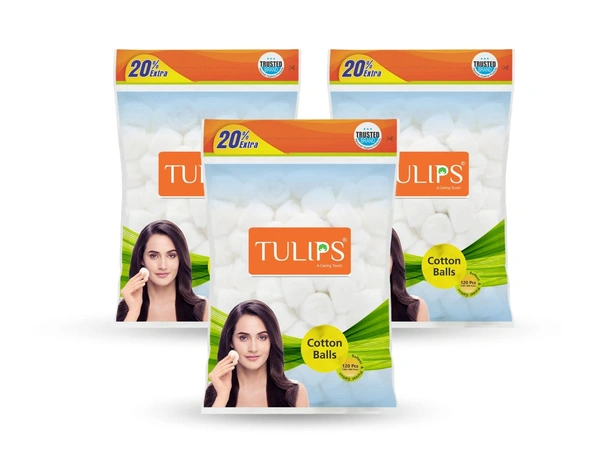 Tulips White Cotton Balls 100 + 20 Free in Each Pack