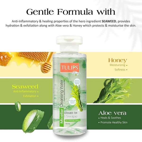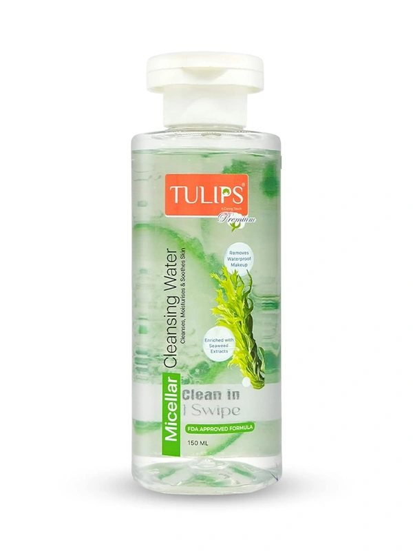 Tulips Micellar Cleansing Water (150ml) | Waterproof Makeup Remover for Face, Lips & Eyes | Suitable for All Skin Types | Gentle on Sensitive Skin