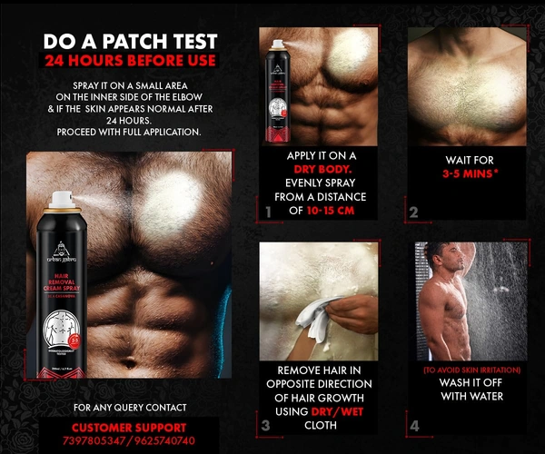 Urbangabru Casanova Men Hair Removal Spray 200ml offers fast, painless hair removal for men's body hair. Its easy-to-use spray formula removes unwanted hair from chest, back, legs, and underarms within 3-5 minutes. Gentle yet effective, it leaves skin smooth, soft, and irritation-free. Perfect for home or professional use, this spray ensures convenient, mess-free grooming with long-lasting results and a comfortable experience.