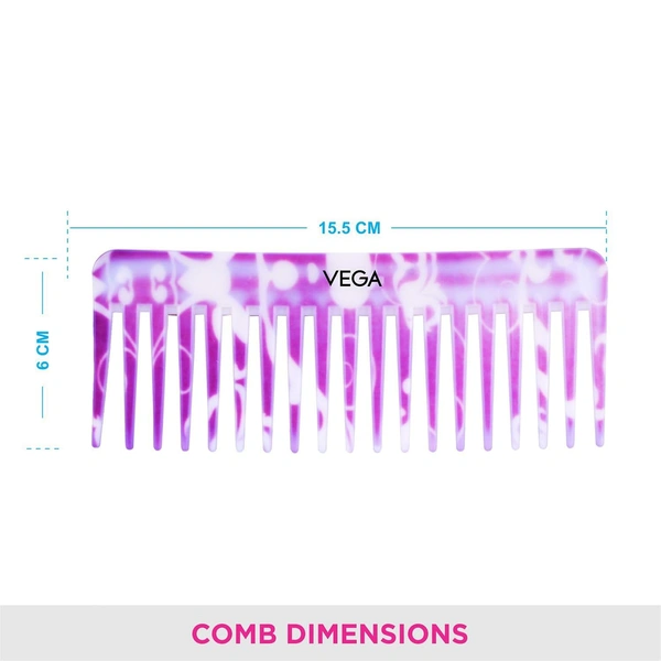 VEGA Lilac Shampoo Hair Comb DC-1268 | Wide-Tooth Comb for Wet Hair | Effortless Detangling & Product Application | Ideal for All Hair Types & Scalp Care