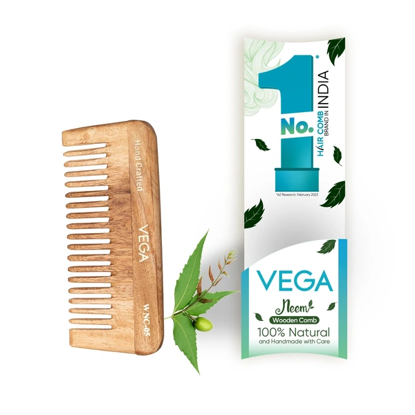 Vega WNC-05 Neem Hair Combs for Unisex, 100% Natural Neem Wood | India's No.1 Hair Comb | Anti-Dandruff & Scalp Nourishing | Hair Fall Control & Gentle Detangling | Eco-Friendly & Lightweight Design