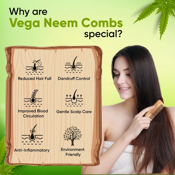 Vega Neem Hair Combs are crafted from 100% natural neem wood, offering anti-dandruff properties and scalp nourishment. Designed for unisex use, these eco-friendly combs help reduce hair fall, minimize breakage, and provide gentle detangling. Their natural antiseptic properties promote a healthier scalp while preventing static. Perfect for all hair types, Vega Neem Hair Combs are a sustainable choice for everyday hair care and styling.
