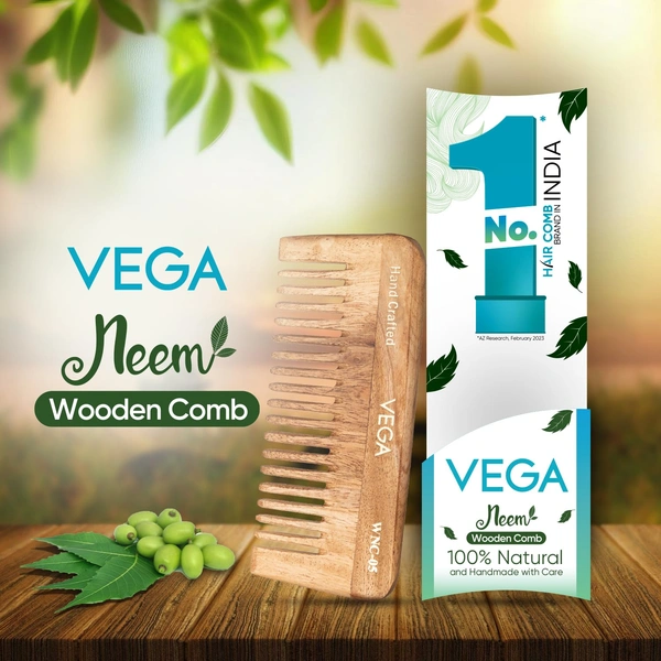 Vega WNC-05 Neem Hair Combs for Unisex, 100% Natural Neem Wood | India's No.1 Hair Comb | Anti-Dandruff & Scalp Nourishing | Hair Fall Control & Gentle Detangling | Eco-Friendly & Lightweight Design