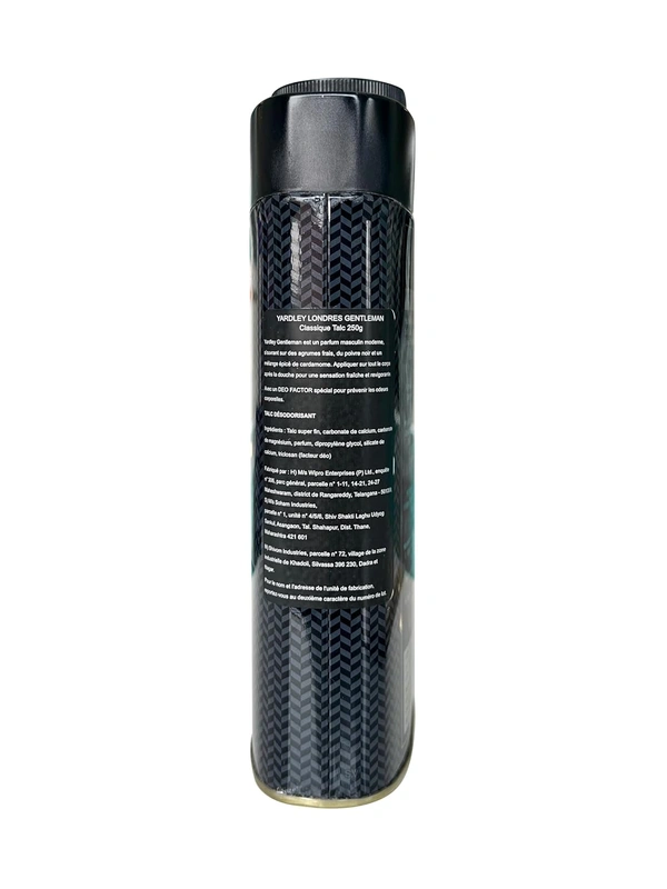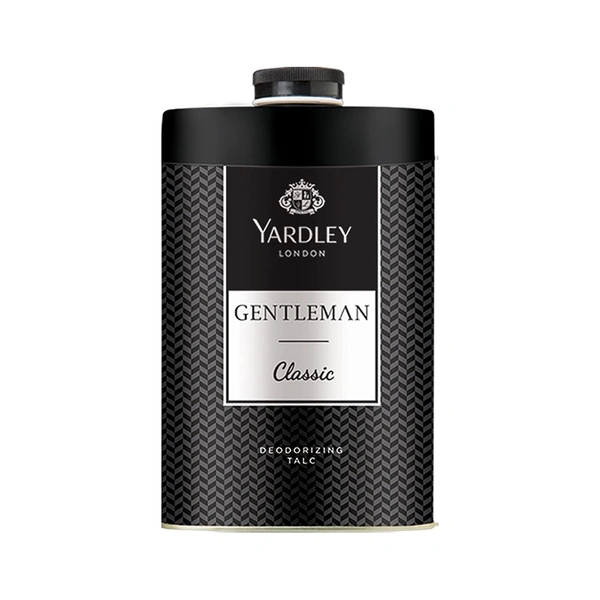 Yardley London Gentleman Classic Deodorizing Talc offers a fresh woody scent with a masculine fragrance, ideal for daily use. This deodorizing body talc absorbs moisture, keeps you dry, and controls body odor, ensuring long-lasting freshness. Its soothing formula leaves the skin soft, smooth, and subtly scented. Perfect for men, it provides a refreshing, luxurious experience all day.