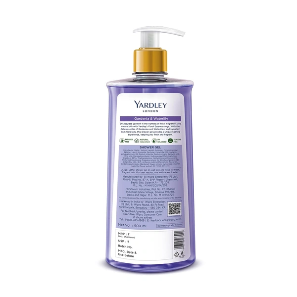 Yardley London Floral Essence Shower Gel 500ml | Gardenia & Waterlily | Hydrating & Refreshing | Paraben-Free | Luxurious Fragrance for Soft & Nourished Skin