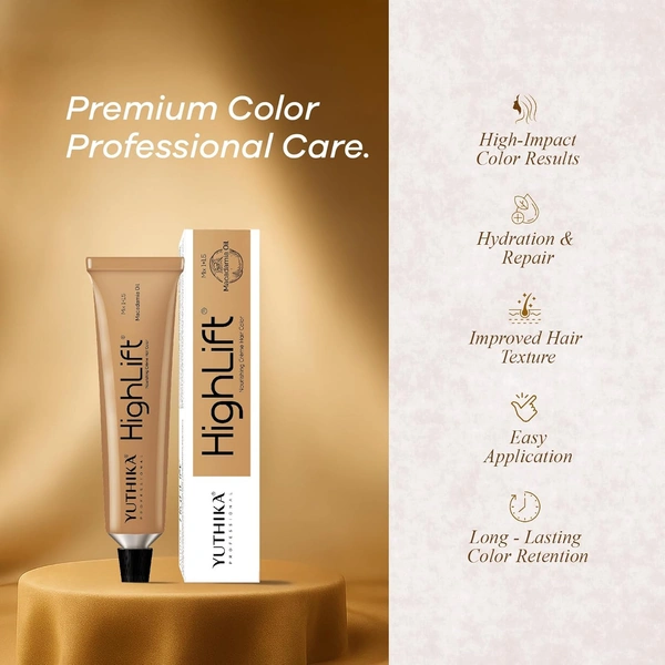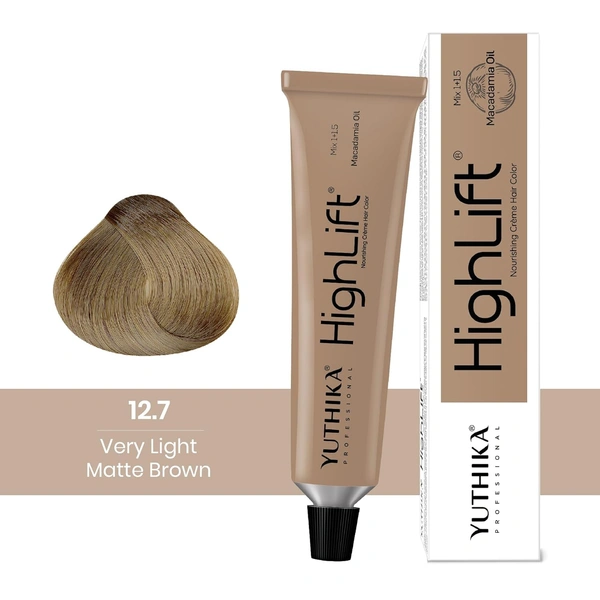 Yuthika Professional High Lift Creme Hair Colour 12.7 Very Light Matte Brown 50g | Permanent Hair Dye with Macadamia Oil & Vitamin E | Full Grey Coverage