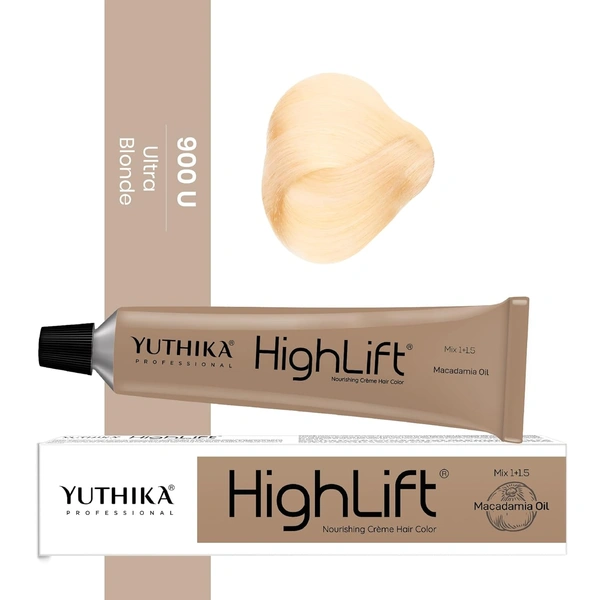 Yuthika Professional High Lift Creme Hair Colour 900U Ultra Blonde 50g | Permanent Hair Dye with Macadamia Oil & Vitamin E | Full Grey Coverage